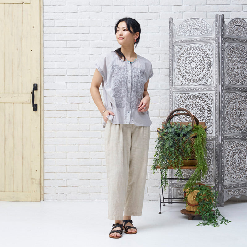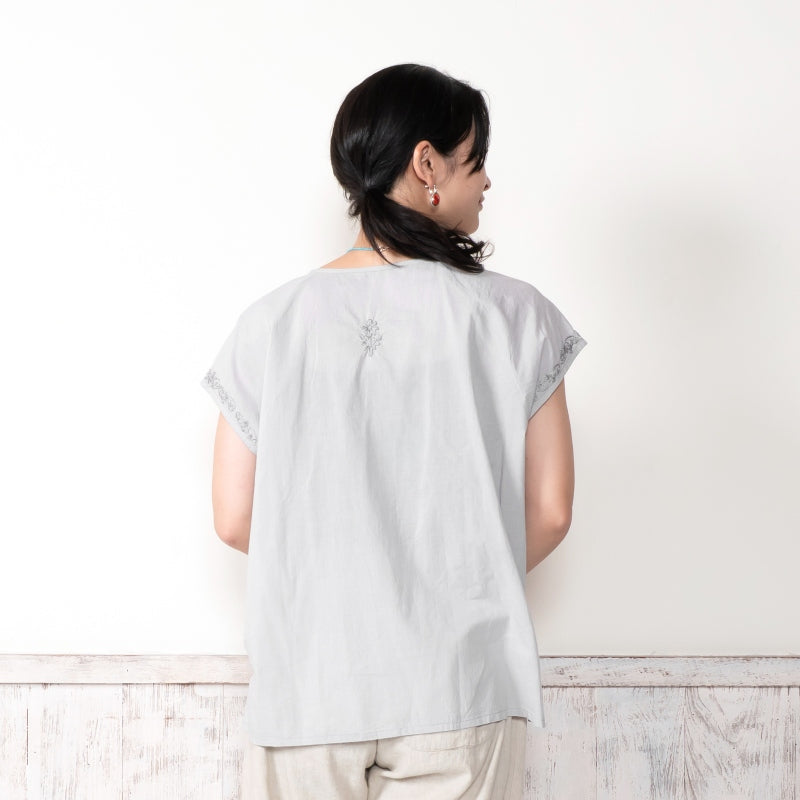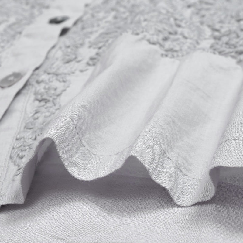 Product Description: Introducing the adult-natural and refreshing Lucknow Embroidery Series, featuring a 100% cotton sleeveless blouse that offers exceptional comfort. This blouse showcases the unique three-dimensional embroidery typical of traditional Lucknow embroidery from India, known for its soft and delicate finish. Available in two gentle colors, gray and white, this design exudes a mature, natural charm and is perfect for staying comfortable even in hot weather.