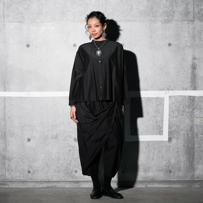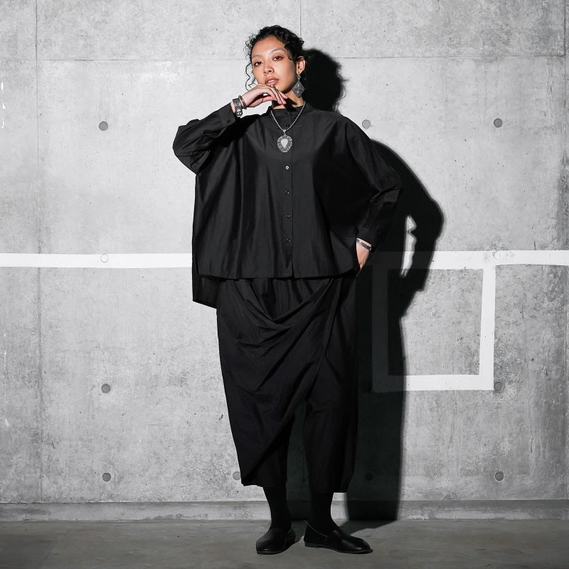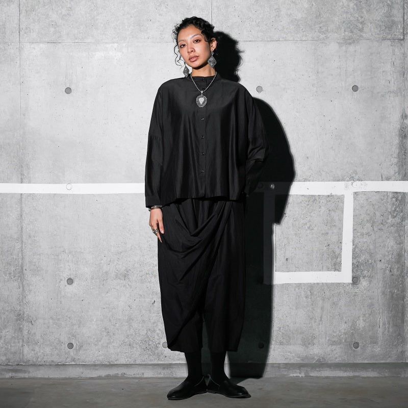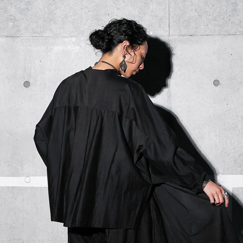 Product Description: This fashion item is an original design by Meguru, crafted from luxurious Indian cotton and silk blend fabric that offers a supple and comfortable touch. The blouse features a simple yet sleek design with a significant contrast in the front and back lengths for added visual interest. Its oversized fit provides a relaxed feel and an effortlessly chic vibe. The versatile design pairs well with various items, allowing for a wide range of outfit combinations. Suitable for both men and women, this blouse is also recommended for men's fashion.