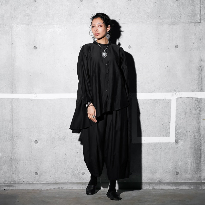 Product Description: Introducing the original fashion item from "Meguru," crafted with indulgent use of supple and skin-friendly fabric combining Indian cotton and silk. These cocoon pants are characterized by a double tuck at the waist, offering a mannish design. The subtle darts at the hem lend a casual yet sophisticated, modern feel. The smoothness and slight sheen from the silk blend allow for an elegant monochrome ensemble. Suitable for both men and women, this item is highly recommended for men as well.